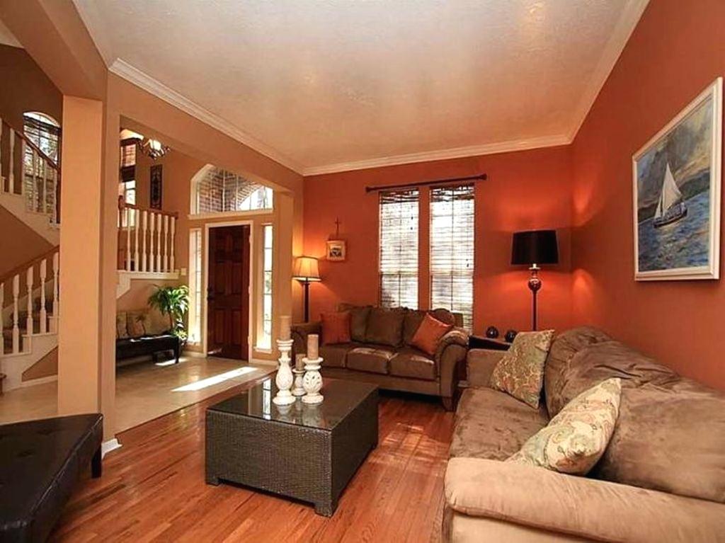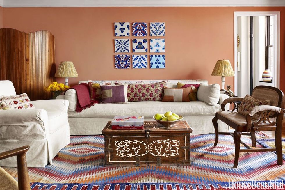Orange walls provide a dynamic backdrop for artworks, while making your home feel sunny and warm.
